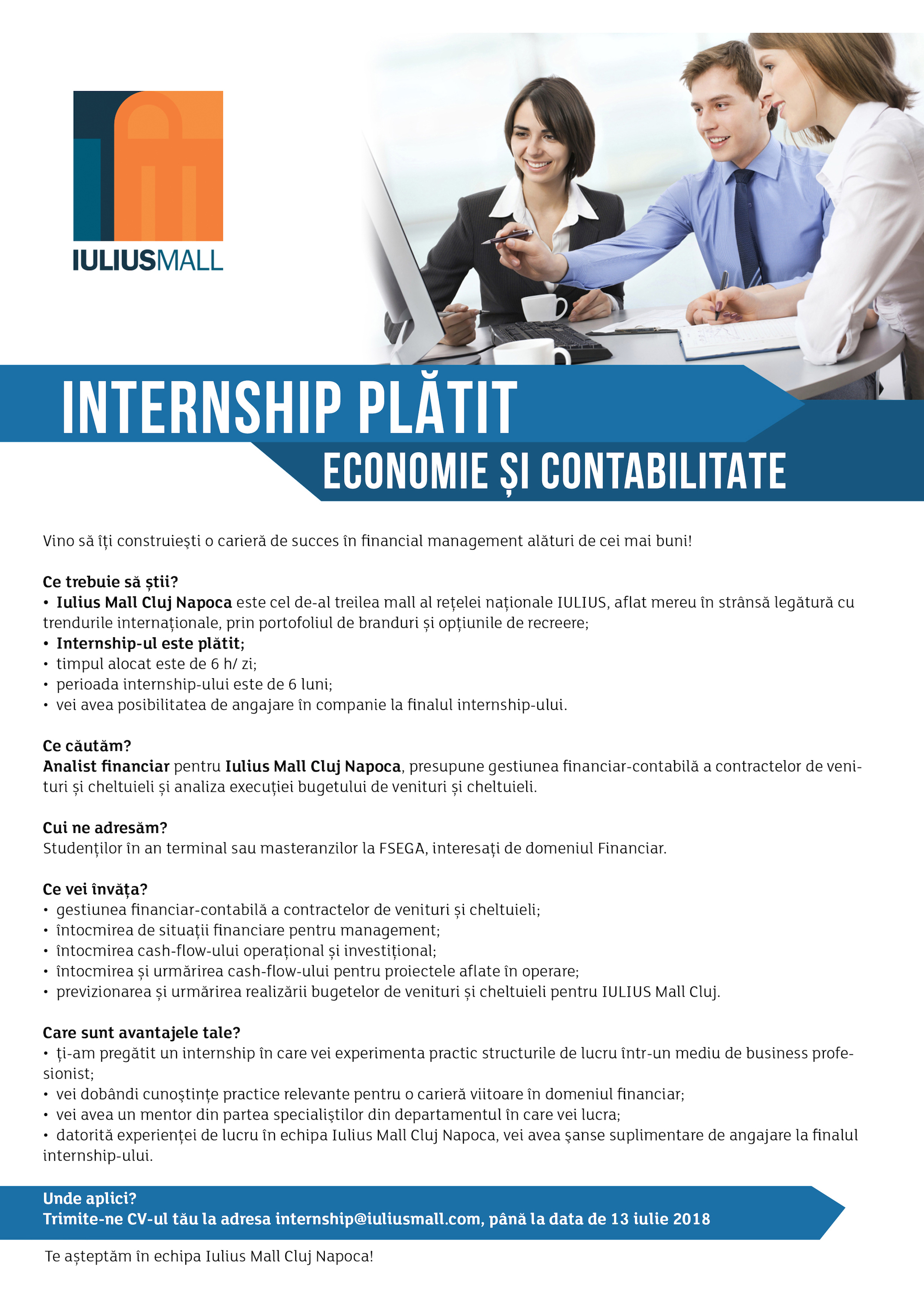 Internship plătit la Iulius Mall Cluj-Napoca - Economie și contabilitate