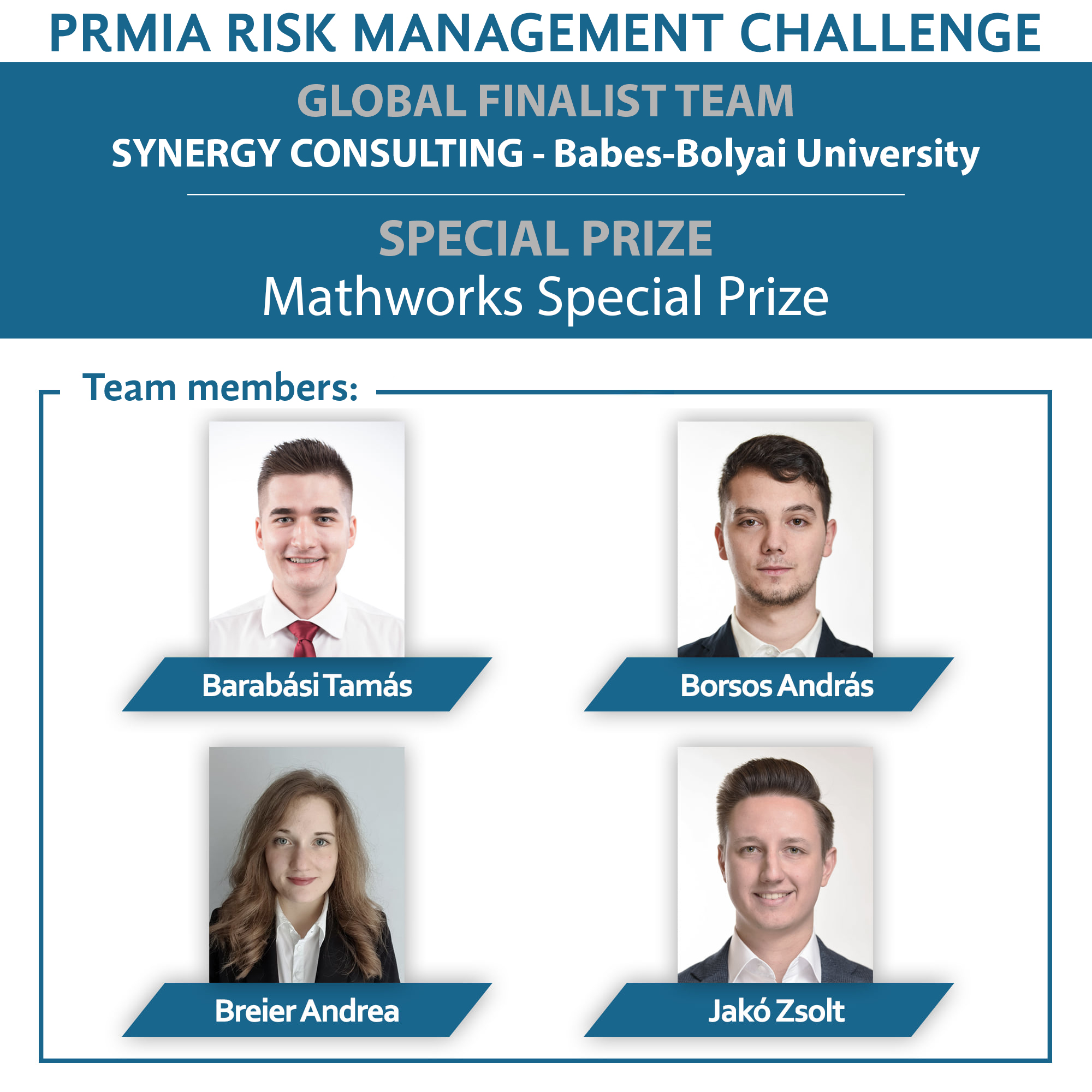 Echipa Synergy Consulting, reprezentând Universitatea Babeș-Bolyai din Cluj-Napoca a avut o performanță remarcabilă în finala globală, obținând premiul special „Best interactive dashboard” oferit de MathWorks.