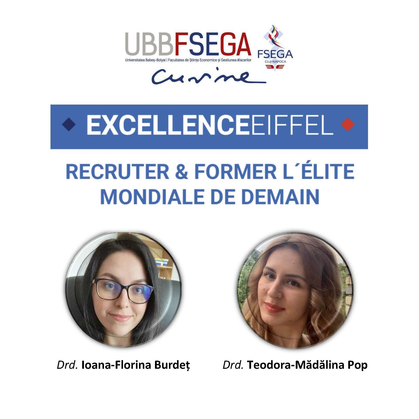 Ioana-Florina Burdeț și Teodora-Mădălina Pop, doctoranzi în cadrul Școlii Doctorale de Științe Economice și Gestiunea Afacerilor, coordonați de prof. univ. dr. Monica Pop-Silaghi, se numără printre cei 38 de câştigători din întreaga lume ai burselor de excelenţă Eiffel, oferite în acest an de guvernul francez pentru studii de doctorat.