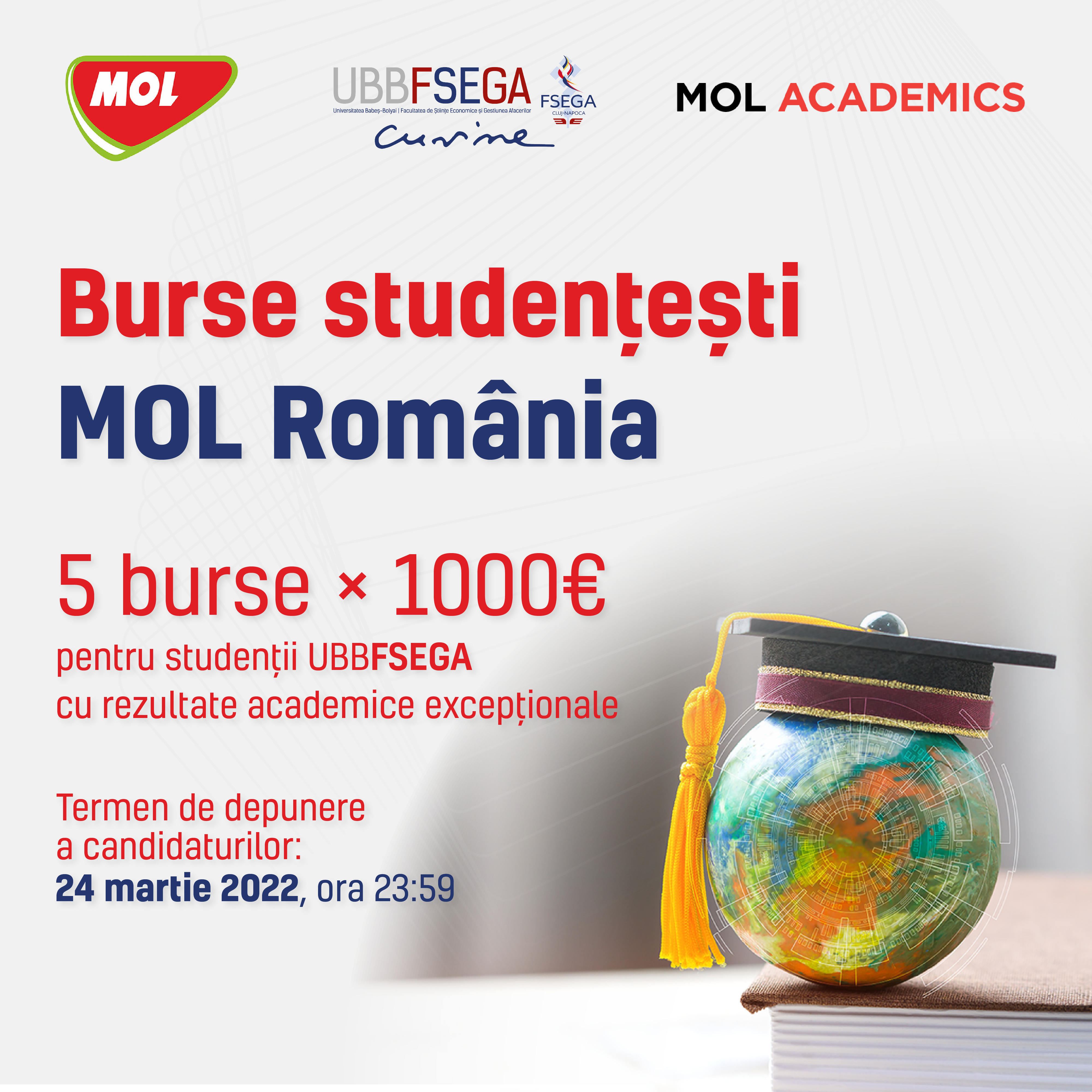 Compania MOL România, în parteneriat cu Facultatea de Științe Economice și Gestiunea Afacerilor din cadrul Universității Babeș-Bolyai din Cluj-Napoca oferă anual cinci burse a câte 1000 de euro studenților înmatriculați la programele de studii ale UBB-FSEGA.