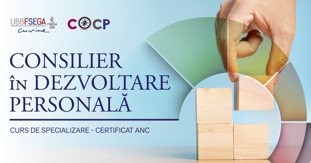 Centrul de Orientare şi Consiliere Profesională (COCP) al FSEGA vă prezintă o nouă oportunitate de dezvoltare personală, de data aceasta dedicată persoanelor care doresc să-și construiască o carieră într-un domeniu care se află în continuă creștere: curs de Consilier în Dezvoltare Personală, acreditat ANC (Autoritatea Națională pentru Calificări).