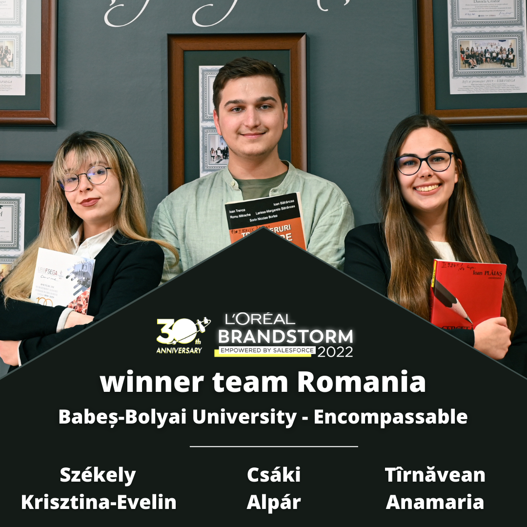 O echipă de 3 studenți reprezentând UBB-FSEGA a câștigat finala națională a competiției L’Oréal Brandstorm din 2022 și vor avea astfel onoarea de a reprezenta România în runda globală a concursului.