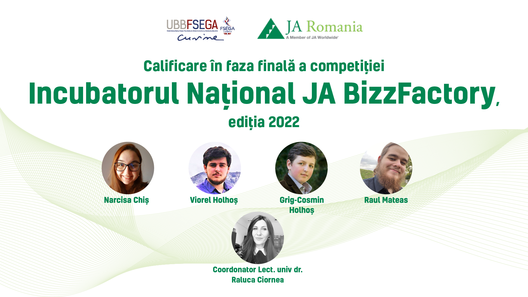 Echipa de studenţi UBB de la FSEGA și Facultatea de Matematică și Informatică s-a calificat în faza finală a competiției Incubatorul Național de Afaceri JA BizzFactory, ediția 2022.